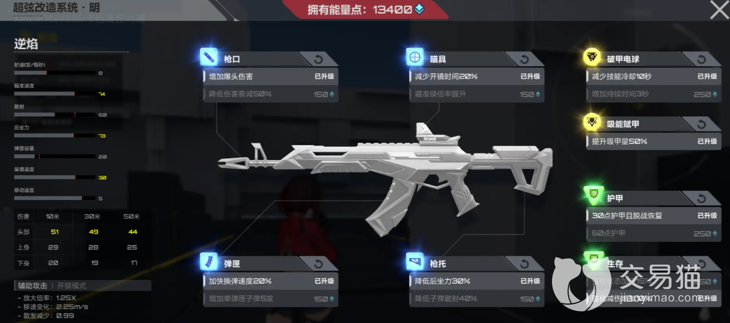 被动技能为吸能赋甲,该技能被触发之后,使用枪械对敌方护甲和护盾都能够造成伤害,伤害数值越高,自己的护甲能够获得的伤害回复也就会越高。在该技能持续时间内,回复量会随着时间不断的增加。