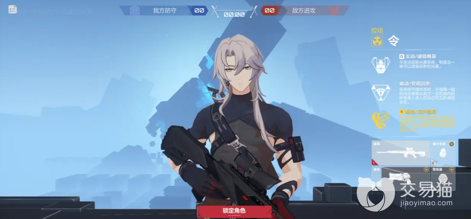 他的主动技能名为破晓帷幕,触发之后可以使自己的伞制造出一堵可以对自己产生保护,并且遮蔽敌方视野的光幕。他在战斗中释放这个技能之后,敌人会看不到令的位置,这样更方便令对其他目标进行攻击。