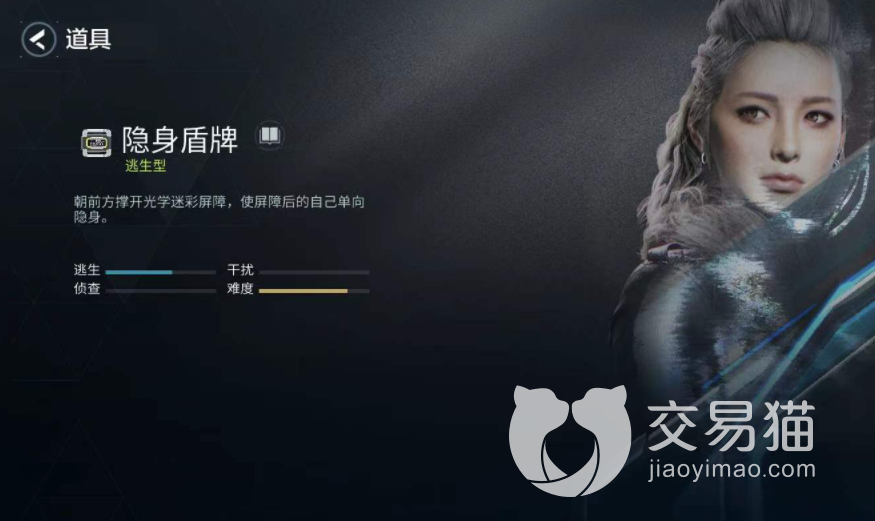 隐身盾牌的作用是隐藏自己,将其功能开启以后,可以让正对面的抓捕者看不到自己。但要注意每次开启功能后会出现能量条,能量条会不断的消耗,等消耗完隐身盾牌也就失效了,等冷却时间结束以后才能再次使用,在能量条消耗以后,要尽快选择其他的躲避方法,以免被抓获。