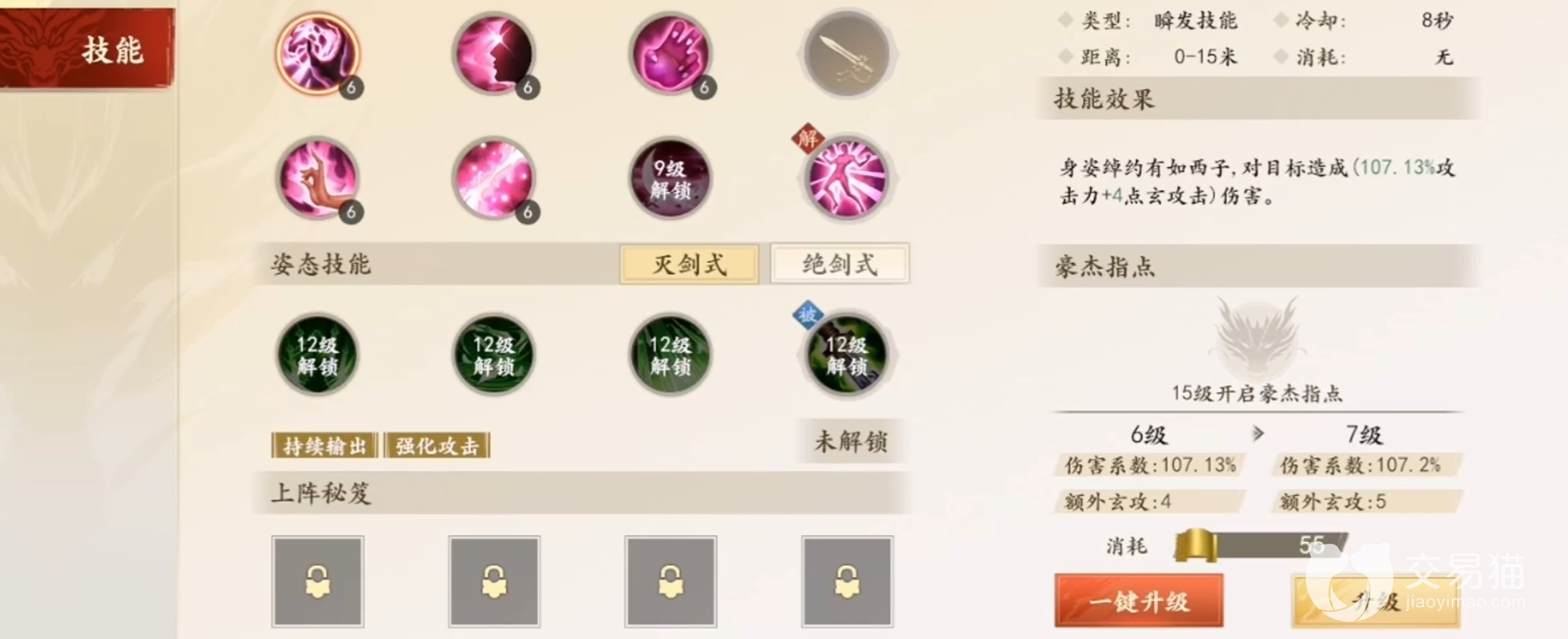 技能五:抽离,这个技能可以延长所造成的散功的持续时间,因为影门派的技能里包含清溪长歌,所以玩家就可以利用该技能去强化角色的输出实力。