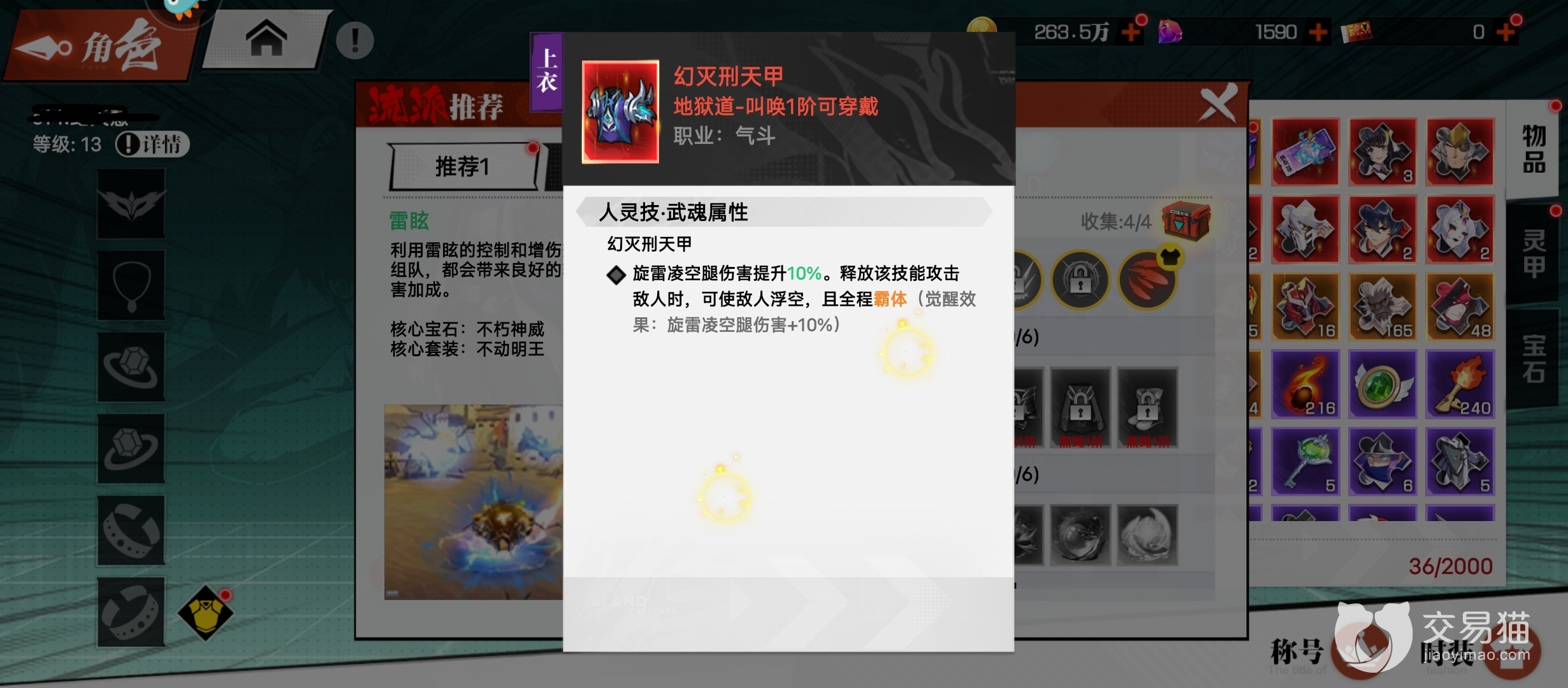 不动明王套。选择不动明王套小编认为主打的就是一个控制效果,无论是雷击附带的眩晕效果还是凌空腿的令敌人浮空特效都能让主角更稳定的打出连击技,还有霸体特效pk时候优势明显。