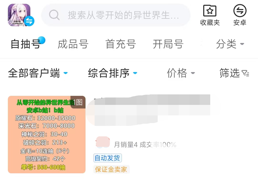 从零开始的异世界生活游戏在交易猫内拥有单独的交易板块,账号交易有很多不同的板块,而且账号都是物美价廉,抽卡次数较少的自抽号甚至只要个位数就能够买到,而且各种价位的自抽账号都能够满足大家哦。