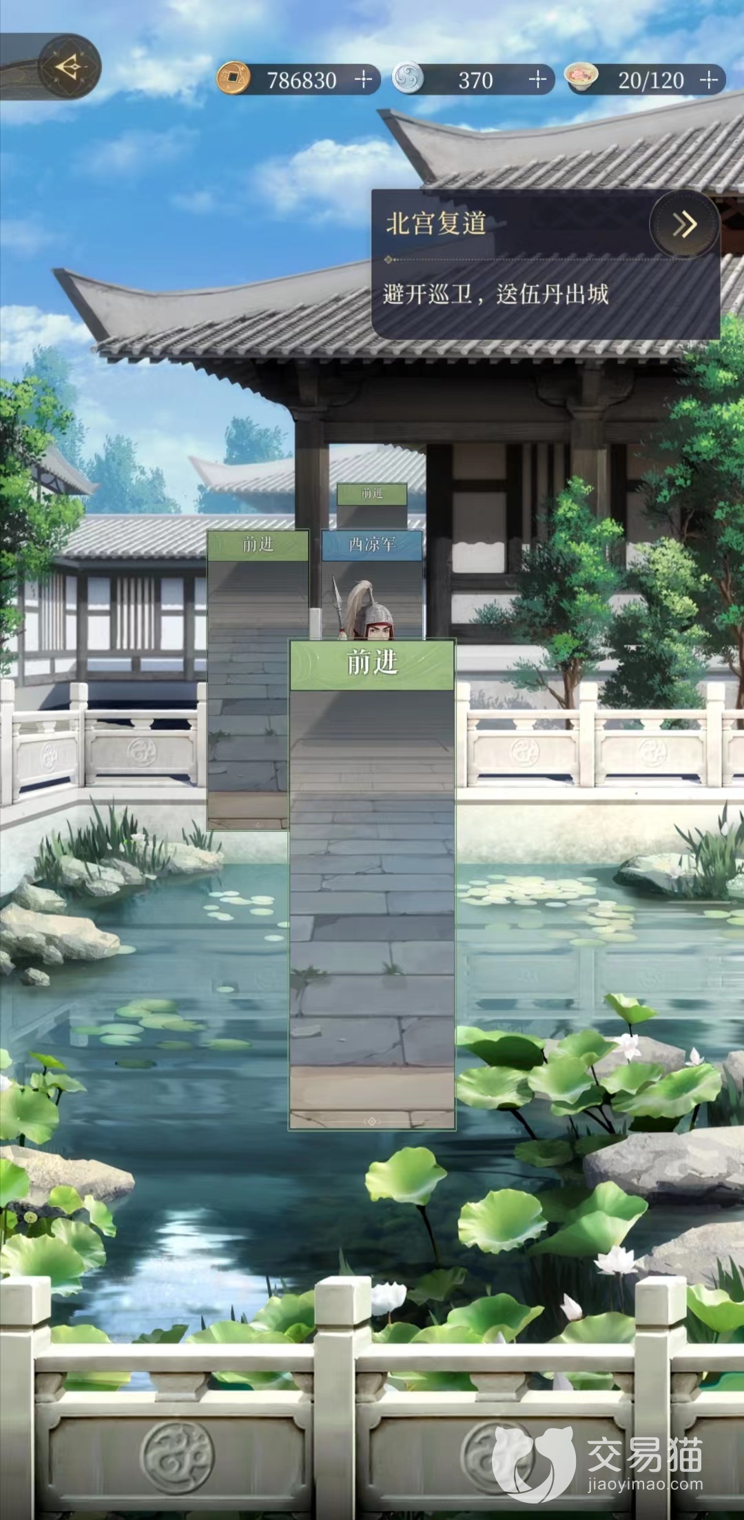 这一关是避开巡卫,护送伍丹出城,然后作为广陵王的我在回到绣楼。前面的西凉军可以避开,但后面的一个副官无法避开了,就只能进行对战了。