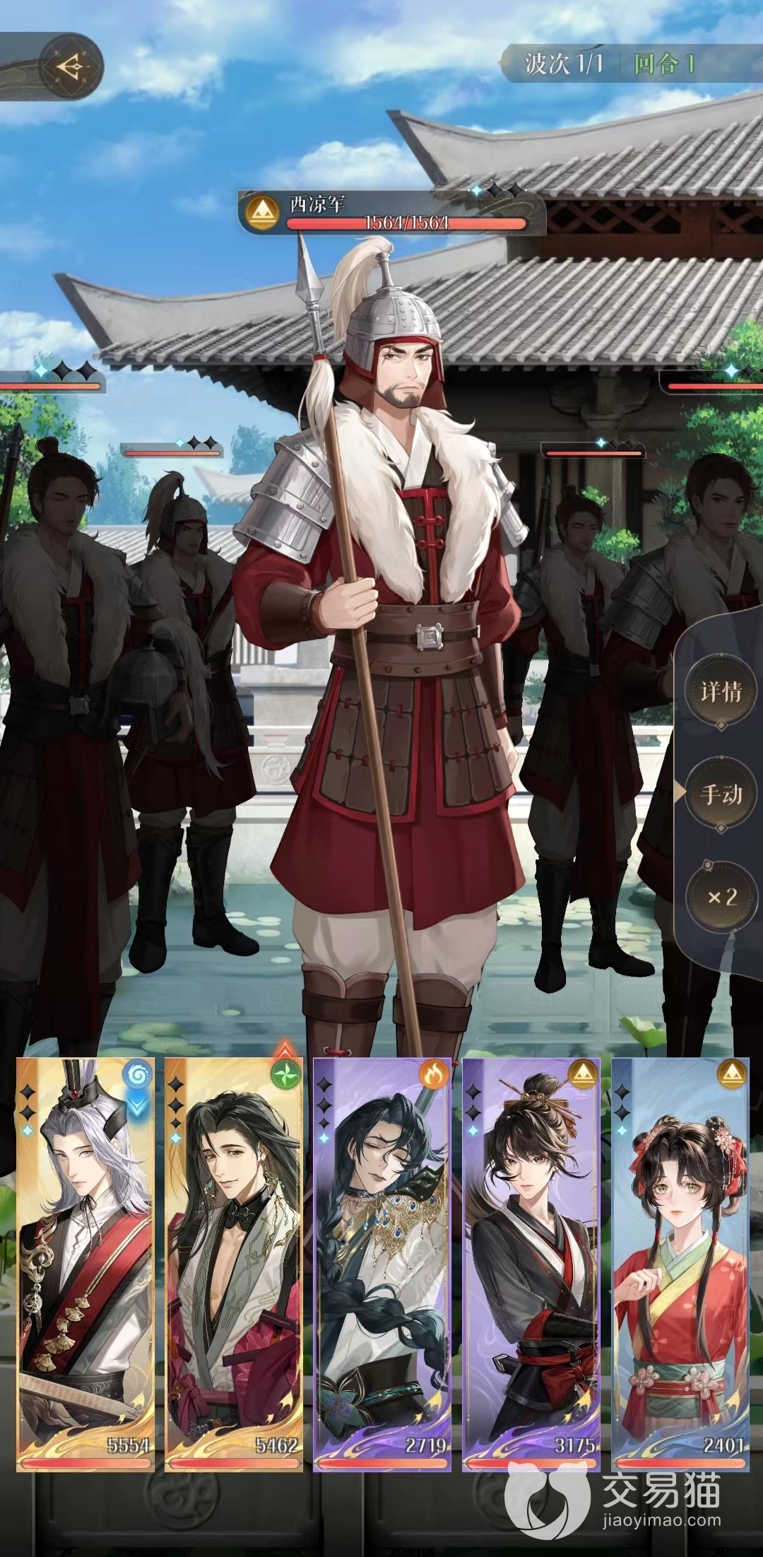 这里那我们阵容使用的英雄就用鲁肃、郭嘉、文丑、阿蝉、伍丹,作为前期吗有许多游戏我们这些运气不是特别欧的人就没有抽到了,但是没关系我们可以利用别的输出密探来替代就可以了,这里并没有严格的条件。这里我们将鲁肃放在队长的位置,尽早开大尽早劝退敌人。
