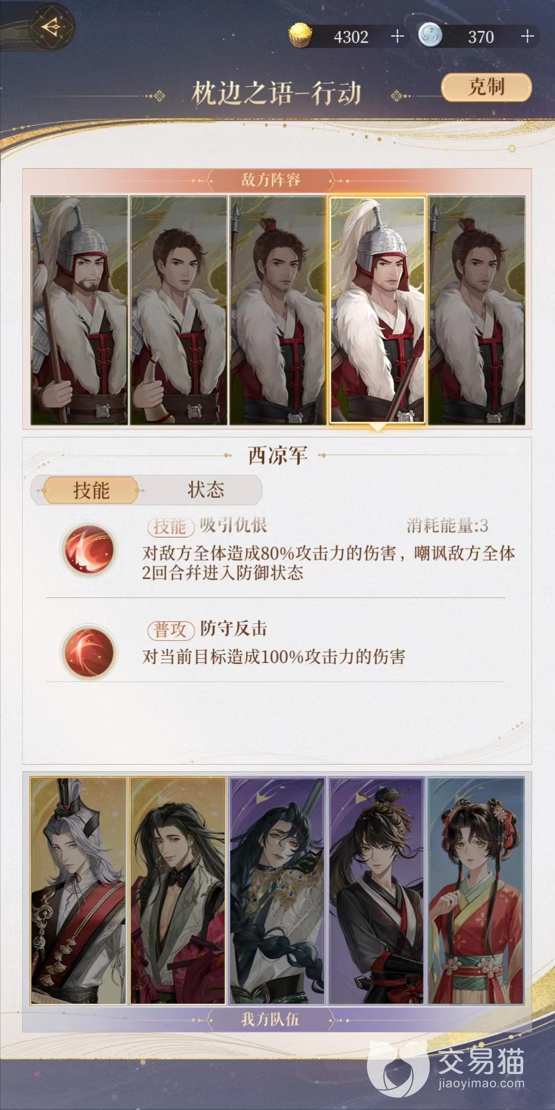 这里我们看一下敌方的阵容和状态,然后进行搭配阵容攻击。