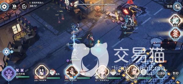 还有很多的角色在画面的最下面,可以点击释放技能或者移动。右下角有一个后备队,这个里面拥有四个待上场的角色。还有一个暂停按钮,这也就是上面介绍到的。右上角是信息按钮,可以详细记录该战场的相关信息敌人的种类,属性,弱点等信息。还有增益和延抗削弱等技能,大家可以在角色头像左下角看是否充能完整,充能100%即可释放。