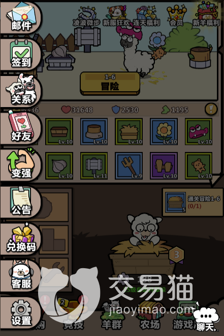 改造羊驼这个设定在羊群的界面中可以看到,而羊群是需要羊驼的等级满足30级之后你就可以解锁了。加入了羊群你就有很多的小伙伴们陪你一起战斗,而改造这个环节是给羊驼属性做提升,从而让小羊驼强力更大一些,玩家们可以通过下边介绍的这几个道具来提升属性。