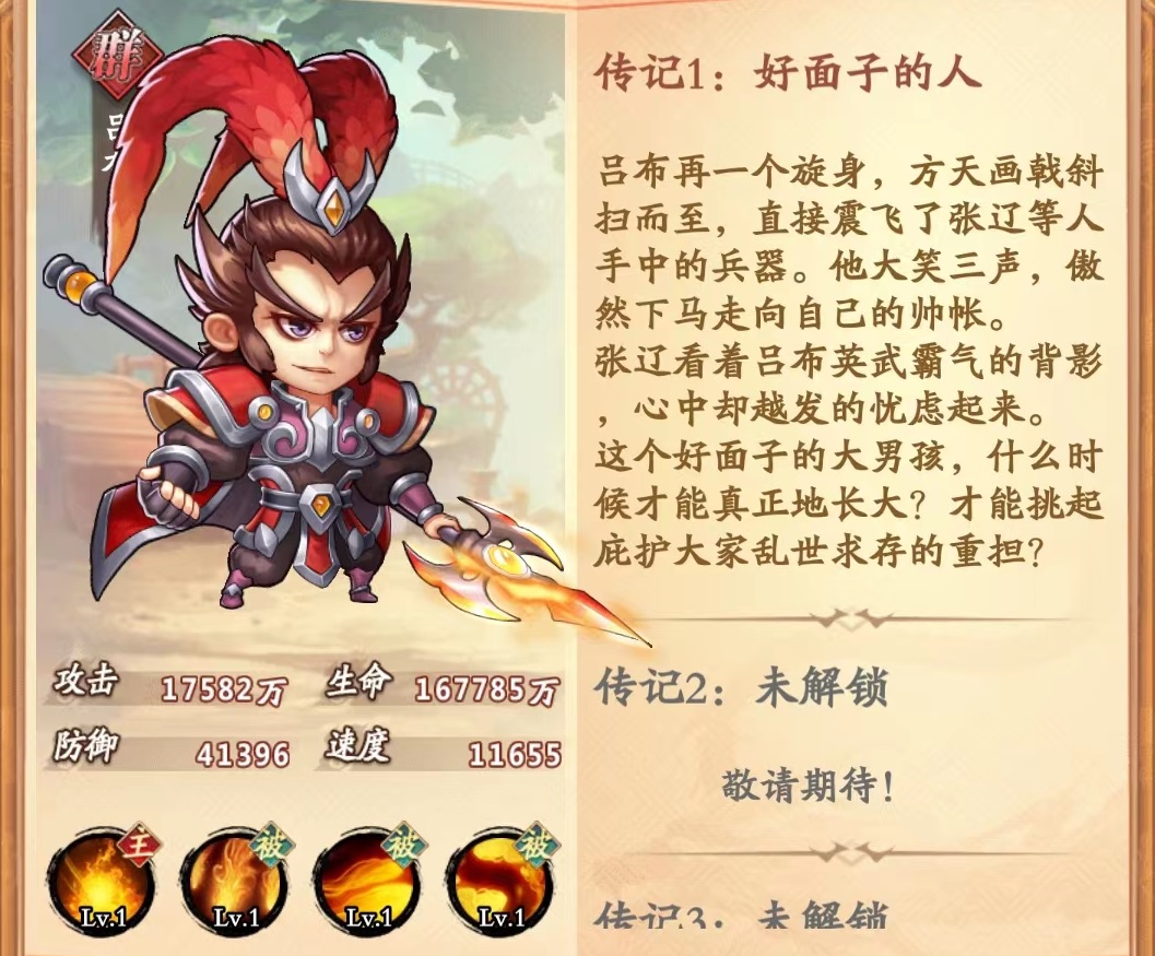 首先推荐的就是吕布。在前期阶段开荒最出色的就是该武将主动技能无双飞将能伤害敌方全体目标,并且技能伤害时提升70%暴击,在觉醒之后伤害和暴击率都大幅提升,几乎可以做到刀刀暴击,自身打出的伤害能够媲美两名武将,使玩家手中非常犀利的角色,即使后期不考虑走进行路线前期也要培养起来帮助快速推图。