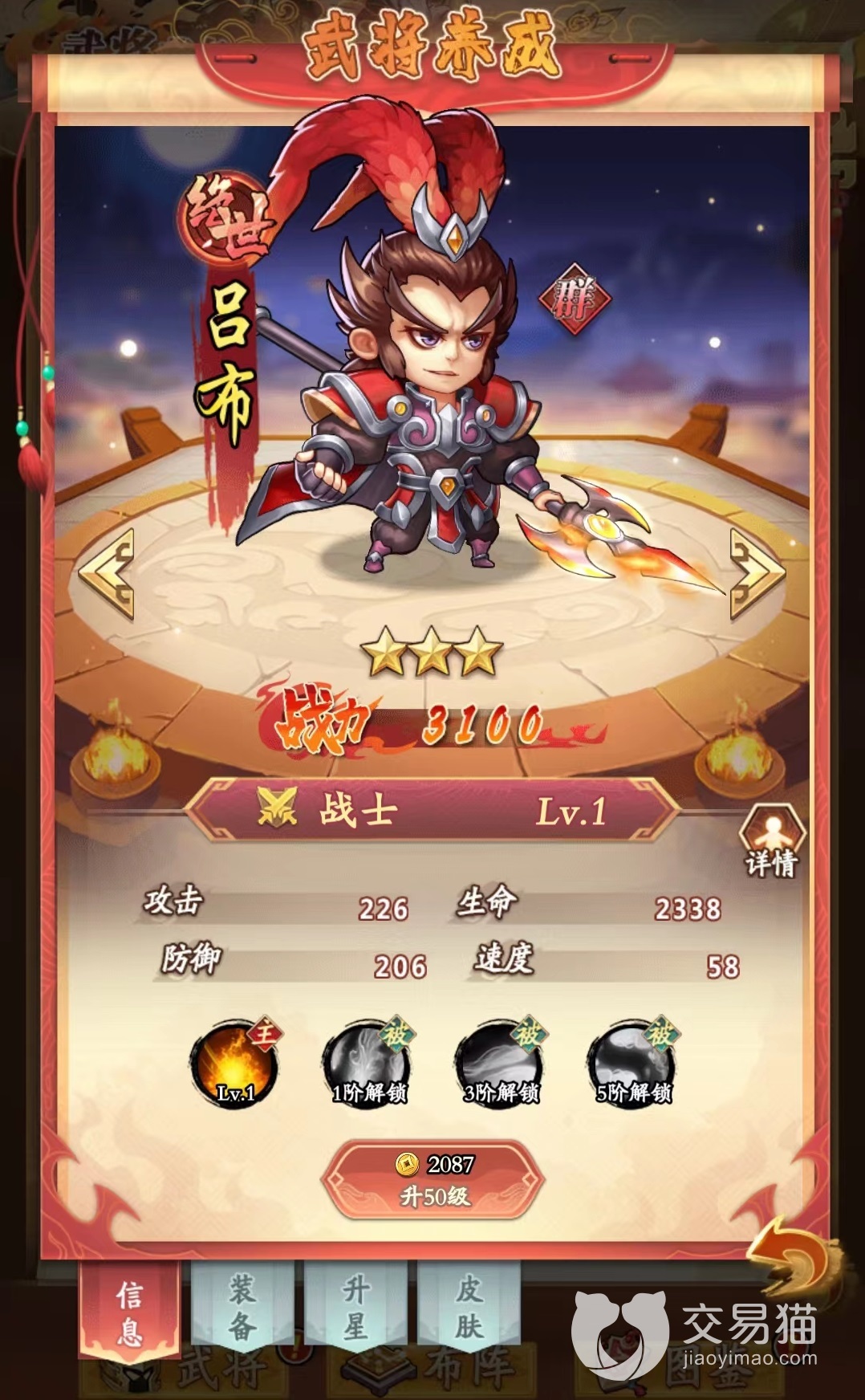 具体角色搭配方面,小编推荐一套阵容就是群雄吕布,华佗与貂蝉,以及蜀国黄月英,诸葛亮和关羽,这6个人都是红色品质,个体实力非常出色。尤其是吕布,更是前期最为出色输出型选手,攻击伤害高暴击率高,自身血量越低攻击力以及吸血加成也就越出色,是越战越勇型人物。华佗虽然不是单纯治疗,但是对己方的辅助能力也很强,再加上还有主动技能中毒伤害效果。