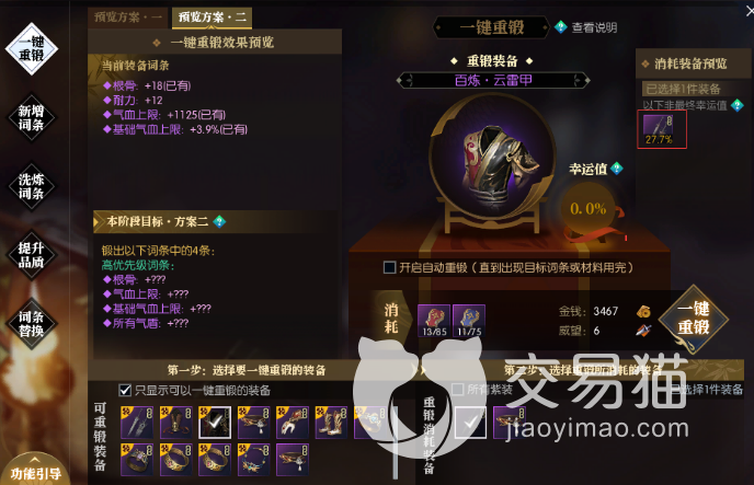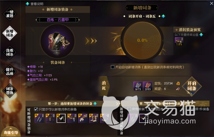 如果在游戏当中,我们想要达到一个极致的话,我们在品阶当中都要过度的,如果想要比较高的武力值,那么我们需要依靠百练才会有进步的可能,百炼装备是在我们打造之后,它会激活3选1的特技能力,如果有不同的属性加成,我们可以在玩游戏当中根据玩法来进行搭配,如果想有长久的可玩性特效技能,也有不同的品阶之分,比如说最高的紫色,它也是有运气的成分。经过我们付出的一些经历,对不同的装备打磨之后,那将会实现最好的一品接属性,我们会根据不同的场合,不同的场景,对装备进行一个搭配,这需要我们自己去思考,是选择极致防御还是输出。要站在不同的角度上去搭配,不断钻研适应场景的装备。