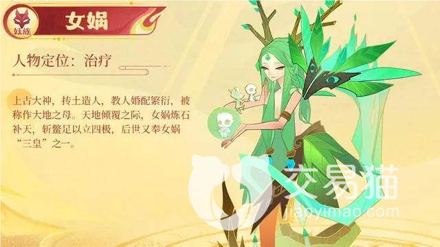 女娲同样是辅助角色,它同刘沉香不同,拥有复活和治疗效果。女娲攻击值不高,但是回复全体的血量,提升队伍的续航力和防御力,为队友保驾护航,从而快速战胜对手。