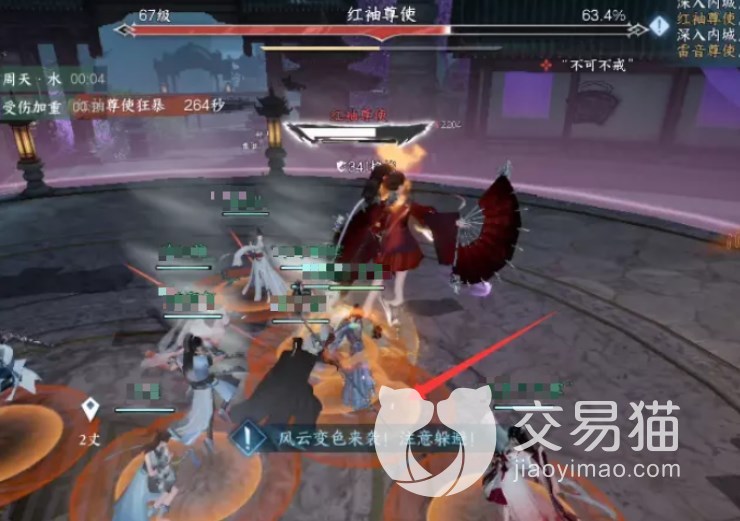 2.【风云变色】:红袖尊使的技能能够召唤三个伴舞,将最近的六名玩家拉入圈中共舞。在共舞过程中,玩家需要了解节奏,并与伴舞默契配合,才能对红袖尊使造成有效的攻击。此时,未参与共舞的玩家需要快速攻击伴舞,以解放共舞中的玩家,方便他们继续攻击红袖尊使。如果共舞中的玩家失败次数过多,就会被红袖尊使“请出局”,无法继续参与战斗。因此,玩家需要密切配合,并保持警惕,快速解救被困玩家,才能成功地打败红袖尊使。