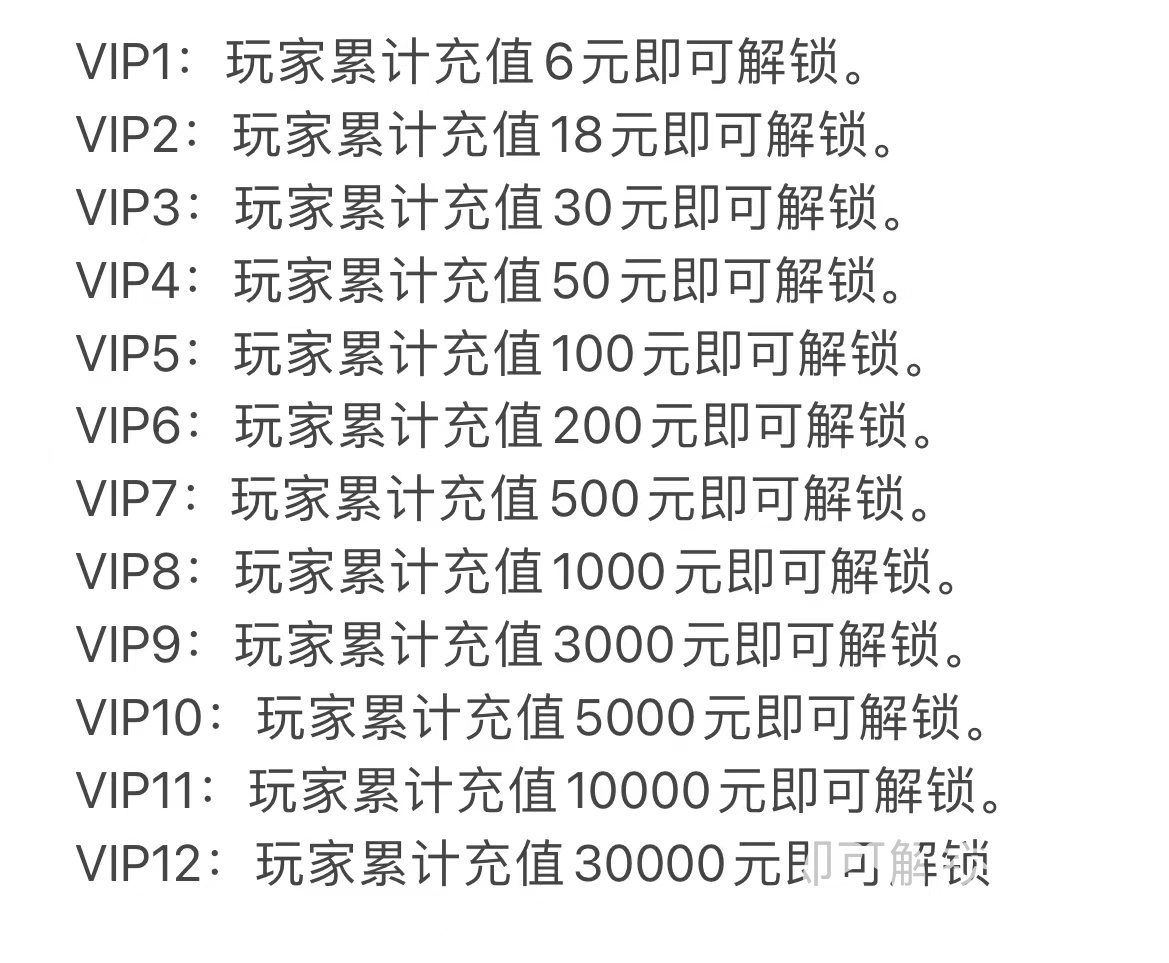 vip10需要达到5000元,每日领取25W铜钱,并且可以获得5个金蛊,vip11解锁可达10000元,每日领取30w铜钱,1个中品女娲石,想要达到最高等级12级,需要累计最高达到30000元,每日领取35w铜钱,3个高级召唤卷和一个中品女娲石,氪金最好还是根据自己的实际情况来决定,千万不要一时冲动,vip5是游戏中比较常见的,特权也是最多的,可以帮助我们节约很多时间去收集材料。
