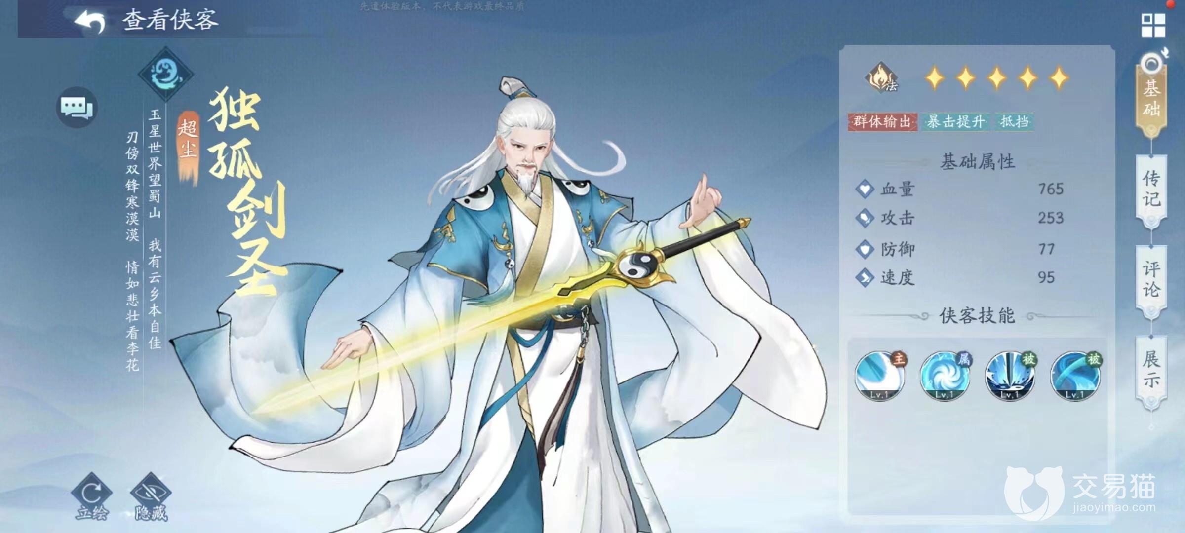 首先第一个就是独孤剑圣,这个剑圣的怒气攻击输出在游戏里面可以说是很不错了,而且要是敌方正处在冰冻状态下,就可以让对方有一个20%的增伤,这个效果可谓是很强劲了,目前游戏里面要是想获得这个角色的话,可以去寻仙路以及五人榜里面去兑换,而且在升级的过程中也是比较简单的,玩家可以尝试一下这个角色。