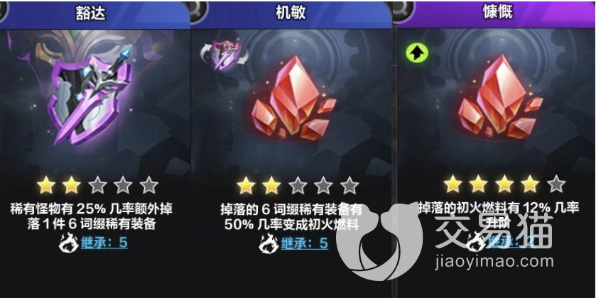 这套卡牌的操作方法和上一套是差不多的,都是先用机敏,豁达,慷慨这三张卡让玩家在关卡内刷更多钱,之后在通过用怪物卡,让关卡内生成更多精英怪物,以此提高稀有物品的爆率。卡牌中的渴望也是提高关卡内怪物掉落物数量的。