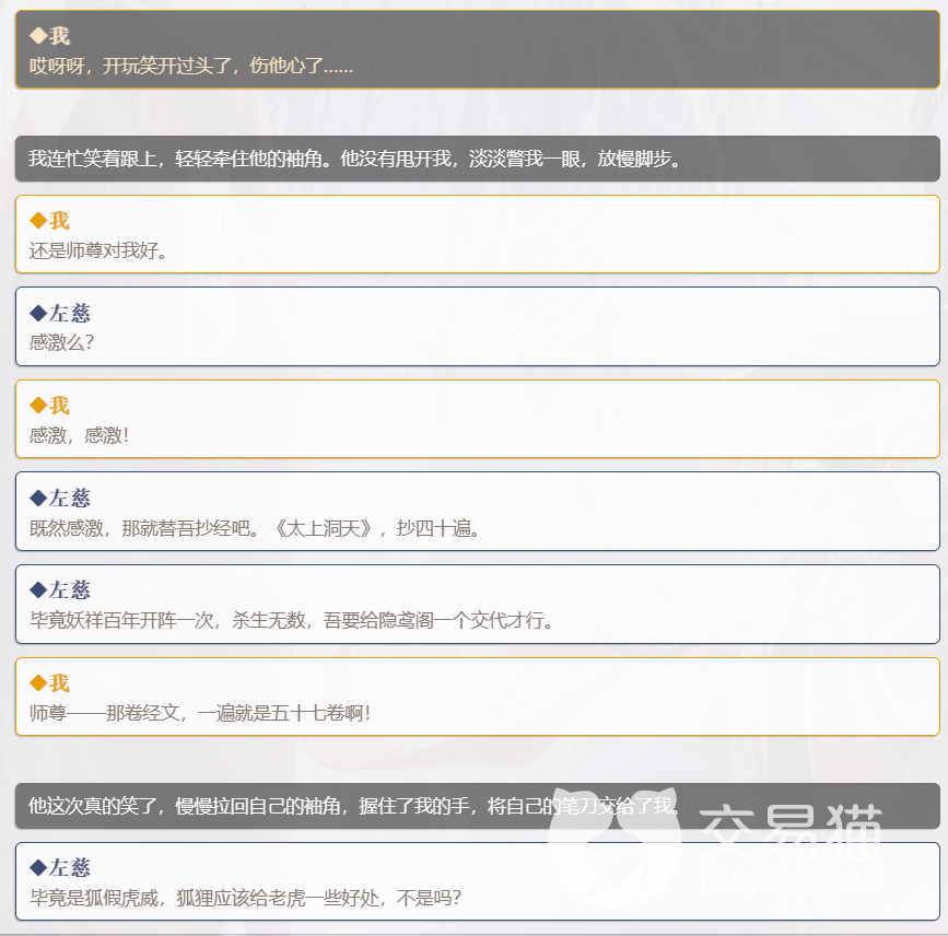 要清楚左慈的喜好,我们需要在游戏中选择和他有关的选项,增加他对你的好感度。左慈的好感度会影响你和他的互动,以及游戏的结局。以下是一些和左慈有关的选项和影响: