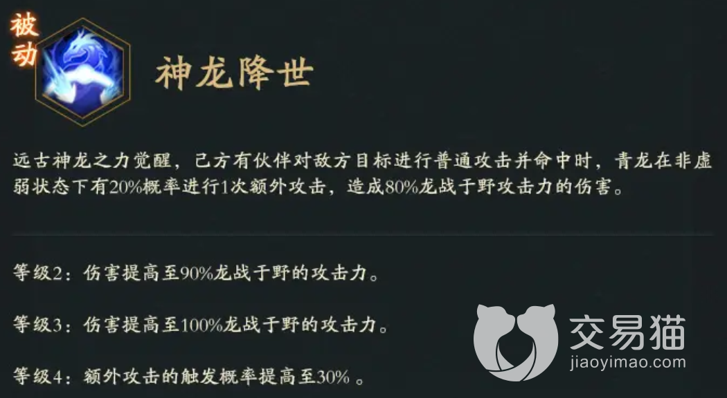 神仙道3青龙技能属性详解 青龙技能效果分享