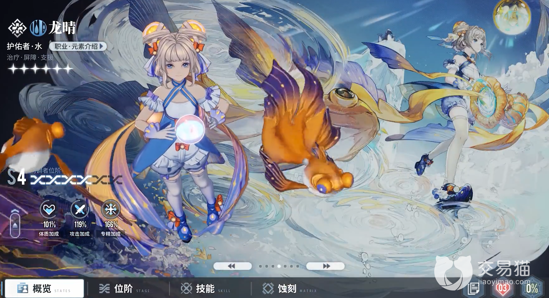 龙晴——作为唯二的六星护佑者之一,龙晴的技能让她在实战中属于一个超好用的群体奶妈和护盾保护。龙晴的治疗量虽然在一众奶量溢出的奶妈中并不是特别的显眼,但是她的保护能力却是奶妈中最为出色的存在,她技能可以给队友进行小护盾和屏障保护,让队友可以在实战中安心进行输出,可以说是奶妈中T0的存在,可以在大招期间直接硬抗伤害。