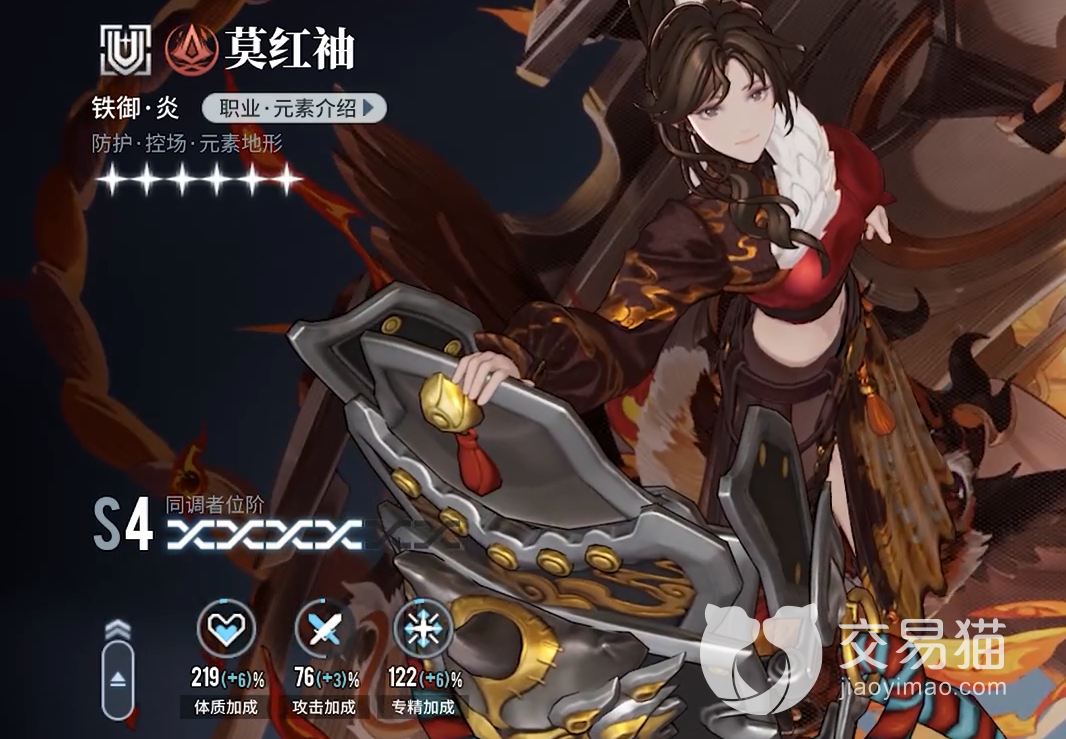 莫红袖——作为一个六星铁御角色,莫红袖在队伍中虽然是一个团队前排肉盾的角色,但是她的技能机制让她在实战中可以进行高额的输出,强势的炎元素技能伤害加上她强力的技能控制效果和各项减伤加成属性,让她在打出不俗伤害的同时可以保证自身的生存能力,超大范围内的控制效果让队伍中的输出角色可以快速跟上。