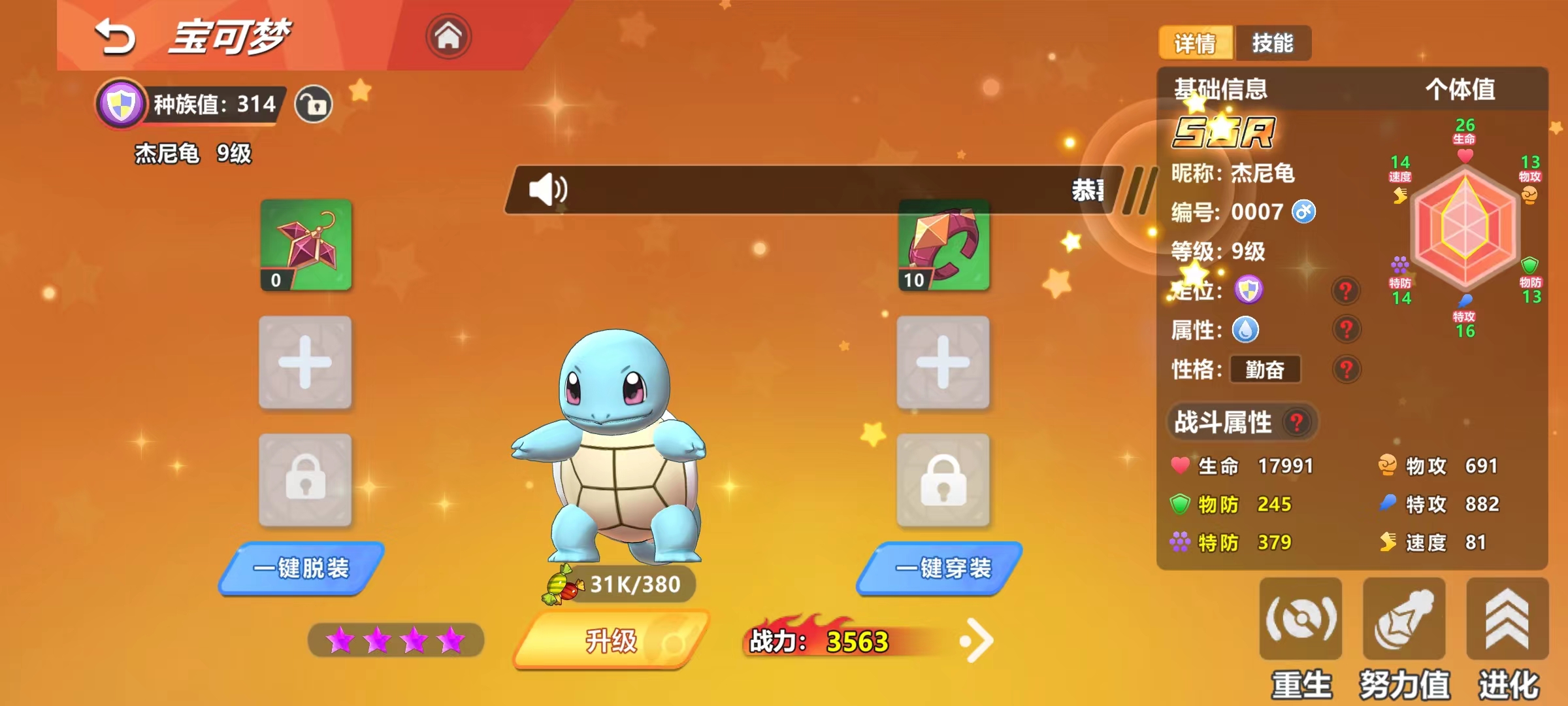 宝可梦有6个装备栏,分别是耳环、戒指、手镯、项链、护石和携带物,每个装备栏都可以增加宝可梦的特定属性和能力。另外,每个宝可梦都是有自己的性格,这些性格会对宝可梦的属性产生一定的影响,玩家们不必担心初始宝可梦性格的影响,因为在达到50级后,可以通过洗涤和继承功能来改变宝可梦的性格。