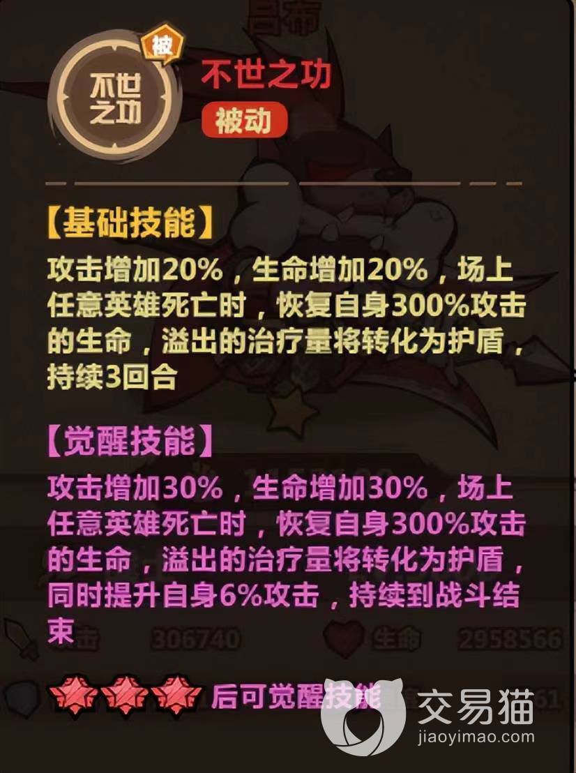 在游戏中,吕布这个英雄小伙伴拥有全体伤害效果和真实伤害效果,还拥有暴击效果。吕布在面对护甲,格挡时依然能够打出爆炸输出。吕布这个小伙伴的被动技能可以提升游戏中护盾的效果和回血的效果,而且在被动技能中,不论哪个英雄战亡时都能够恢复300%攻击的生命,然后将多余的治疗量转化为护盾以后可以在战斗中持续三个回合。