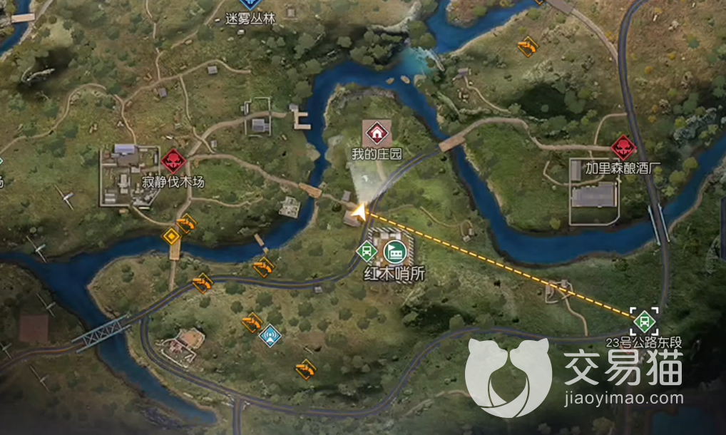 金森则笔记第一章的地点即肮脏的行李箱的位置坐落于红木林地这一探索地图里,大约在加里森酿酒厂的西北方向,玩家沿加里森酿酒厂向西北方向走可以看到一条河,正西北方向斜向坐落着一座桥,肮脏的箱子所在地就在桥口向东不远的地方,稍微走两步就到了,玩家走到地图上小编描述的位置附近后可以在这里看到一个小木屋,大家要找的肮脏的箱子就躺在木屋外的角落。