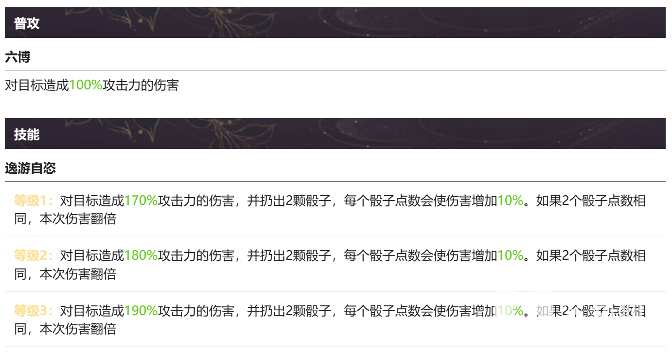 杨修:作为输出,他可以造成大量的单体伤害,并且有几率使敌人陷入中毒状态,持续扣血。他的大招可以无视敌人的防御,并且有几率暴击两次。建议放在四号位,有暴击加成。具体值看下图: