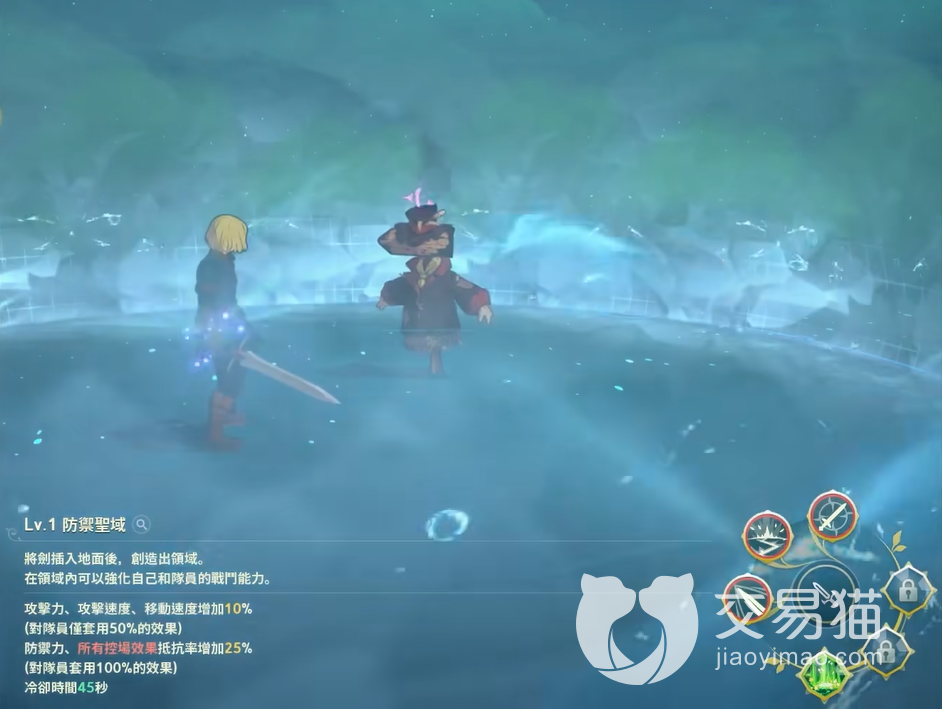 首先是萌新选择最多的职业剑士,这个职业最具代表性的职业技能无疑是其自带的buff防御圣域,只需施放这一个技能,就能为自己提升攻击力、攻击速度、移动速度,乃至防御和控制抵抗多项属性,使得这名角色即便在没有队友配合的情况下也可以有很强的单体作战能力,符合其多面手的角色定位。