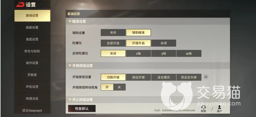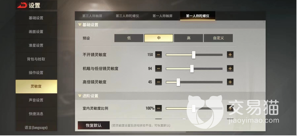 在这里要提醒一下各位,游玩过程中灵敏度基础设置和高级设置都会有一个初始默认值,基础设置各位可以根据小编设置一下,高级设置大家使用初始默认值就足够了,但是如果大家对操作要求比较高的话,也可以根据不同的操作需求进行相应调整。
