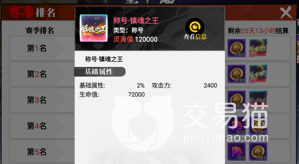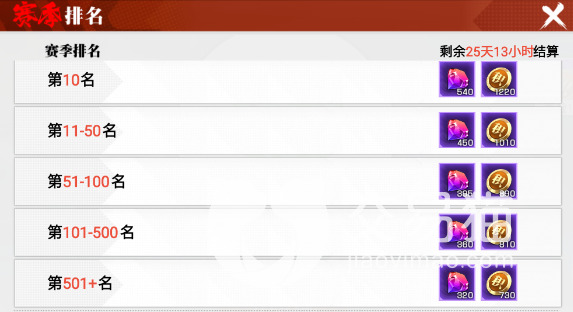 公平竞技采用赛季制,每个赛季持续一个月左右,每个赛季完成之后,都会有针对排名发放的奖品。而排名越靠前,自然奖励就越多,而且前几名甚至还有特殊的称号以及属性加成。你可以在赛季界面查看自己的排名和奖励。