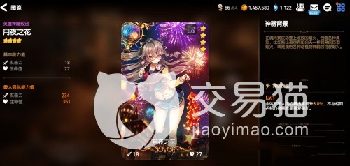 月夜之花,4星,在pve方面很出色,在pvp方面一般。它能提升全队8%(16%)的暴击率,如果有其他同类效果神器,不会叠加。这张神器在pve讨伐中非常好用,一般会给负责增加队伍攻击力的工具人。