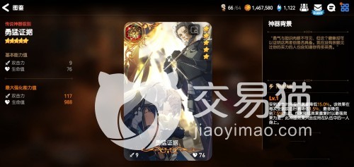 5星神器之一的勇猛证据,名字就很霸气,实力也不容小觑,无论是pve还是pvp都能拿到S+的评分。它的神器效果是在遭受攻击时减少15%(30%)的伤害,每次被攻击后效果会降低1.5%(3%),但最低也有7.5%(15%)的减伤,如果有多个减伤效果,以最高的为准。不过这张神器只能有一个队友使用,限制了它的普及。简单来说,它就是一张高效的减伤卡,适合那些需要抗打的英雄。