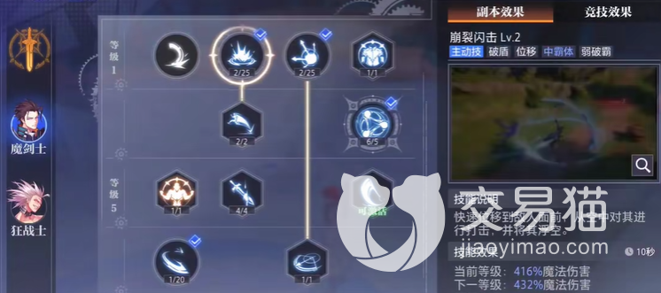 魔剑士推荐技能可以选择几个高爆发的技能在配上被动技能,双必杀技、绝影、剑舞、蓄力斩、魔力附加,被动技能可以选择带剑刃乱舞,疾风刃,剑意标记这三个副系技能可以将敌人聚集而且在CD较快的同时还可以灵活的进行闪避使用。