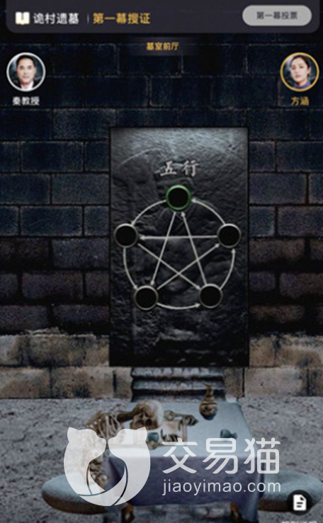 既然是考古那么免不了需要进入墓洞里进行考察,在墓洞中大家可以发现有一个蓝色的珠子,珠子旁的手绢上有五个蝴蝶,蝴蝶的颜色就针对这烛台的数字,五行珠的排序也可以根据颜色来进行排序,顺序为:木、水、金、土、火。公开方涵和秦教授的剧本里可以共享信息,结合遗书推导出前厅的尸骸是将军。