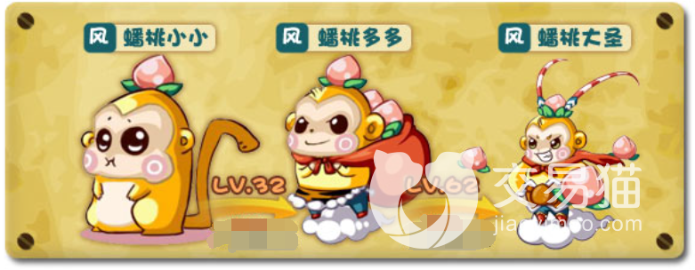 当你成功捕捉到齐天桃圣后,你就可以在背包中找到它,并且发现它身上带着一只蟠桃小小。恭喜你,你已经拥有了一只可爱又强大的风系精灵!当然蟠桃小小想要提升至通天大圣就离不开我们的主人公——千年蟠桃了。