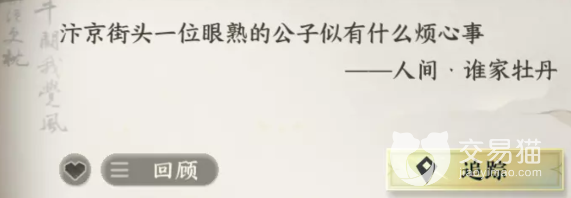 千叶牡丹则是与npc人物朱肱有联系的奇遇,讲述了他与郑训古父子之间的和解过程。要触发这个奇遇,你需要在人间任务【谁家牡丹】中选择不告诉郑训古欧碧壮丹的下落。
