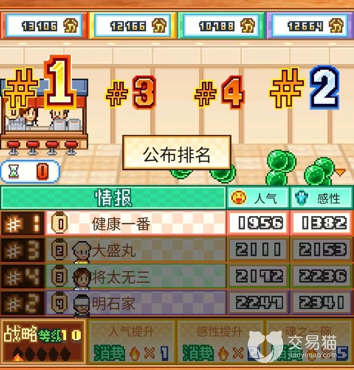 在游戏的后期玩家就需要注意配套的选择了,比如说玩家可以参加拉面比赛,在比赛之中玩家就需要使用配菜来叠加数值,在自身没有很好的汤底和拉面的情况下,配菜的数值往往可以决定玩家在比赛中的胜负,在这里给玩家推荐八个烤葱的组合,在加上了八个烤葱之后,玩家可以随意再叠加其他的配菜,这样的比赛成绩一般都不会太差。