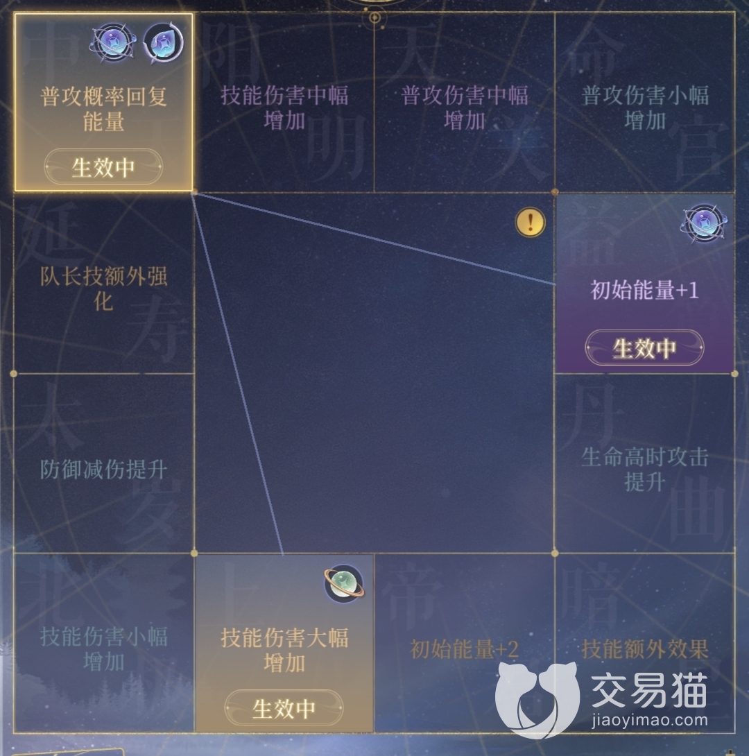 再将命盘洗出技能伤害大幅提升、以及中幅提升或者技能额外伤害,初始能量加2等等,这样有机会让杨修开局就直接放大,运气好的情况下立刻带走一人。