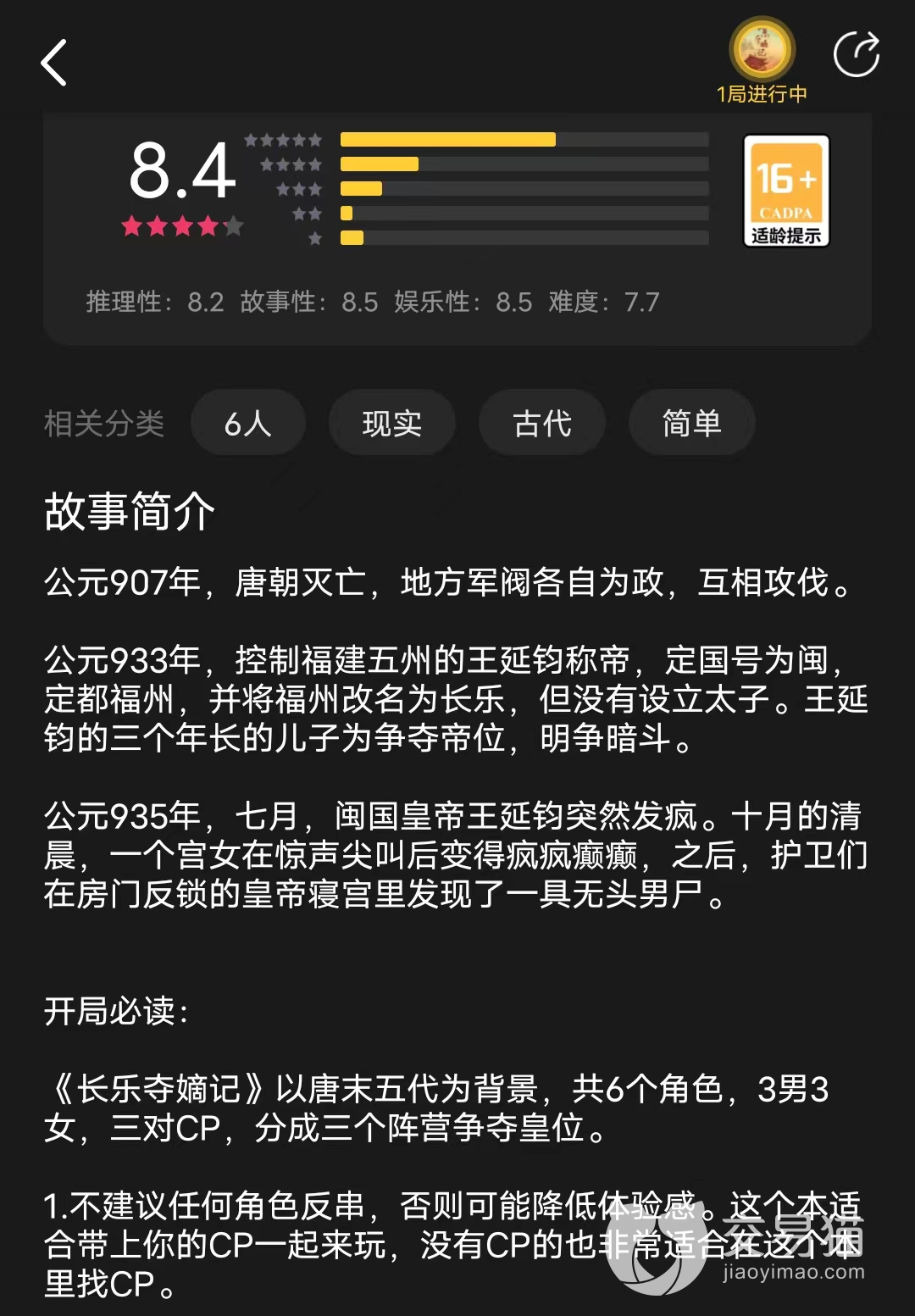 长乐夺嫡记这个剧本的整体时间还是比较长的,而且还是一个六人的多人本,同时还有这很高的阅读量,下面小编就来告诉大家百变大侦探长乐夺嫡记凶手是谁。如果还不知道该剧本的答案都有什么的话,那么就一定要紧跟小编的步伐。以下为大家带来了该本子的详细答案分享,以及人物的身份解析。