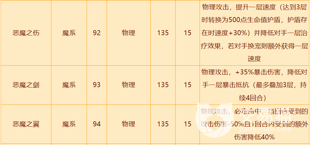 技能推荐:恶魔之伤、恶魔之剑、恶魔之翼、魔之血域、天脊之击、乱剑之魔、混荒双刃、魔域(阻止物理)、MEGA超必杀(嗜斩魔劫·轮回)、羁绊技能(根据自己拥有的精灵而定)。