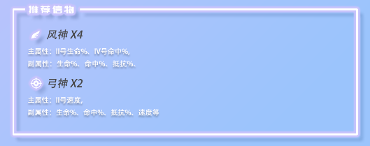 推荐信物目前是只有一个组合可以推荐给大家,建议是用风神*4加上弓神*2,这样的组合主属性上面是增加生命以及速度的,而附属上面除了生命之外,还有命中以及抵抗百分比的增加,搭配好了之后洛基其实是比较适合搭配阵容一起去参与PVP来参与的,不过这个角色建议大家是培养之后来体验比较好,有还是有很多玩家认为这是一张废卡,但是在培养过后拿来参与PVP的效果会让大家大吃一惊哦。
