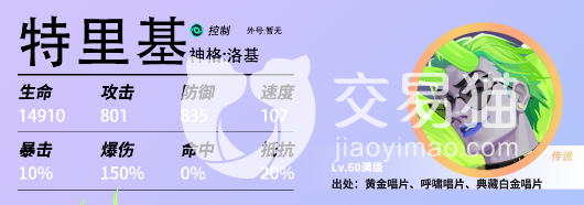 洛基也是一个传说的角色,但是在获取途径上面目前是有三个途径来获取的,除了大家了解过的黄金唱片之外,还有呼啸唱片以及典藏黄金唱片里面也有机会获取,如果想要使用洛基作为队长的话,那么大家还可以看到将全体成员生命提升40%的队长技能,目前在所有的数值里面也是初始的生命值比较高。