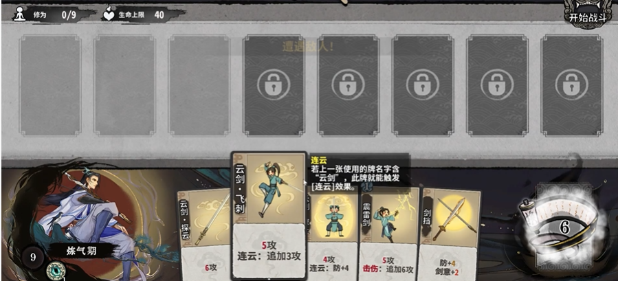 这款游戏的背景是修仙,每一场对局玩家都需要从零开始修炼,然后不断的利用卡牌去突破自己的境界,从而提升自己的实力,基于这一点,可以知道的是,这款游戏的主要玩法就是玩家通过自己手里的卡牌去提升等级、突破,因此,就需要对卡牌进行重组,并且合理利用,才能击败敌人,获得胜利。