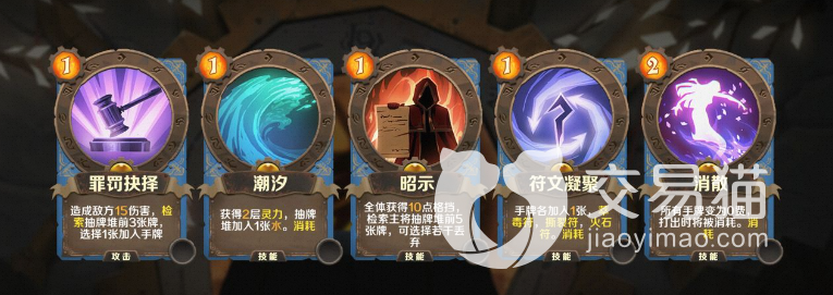 最后输出型的卡牌选择范围比较大,一般会选择罪罚选择以及符文凝聚等卡牌,可以直接一回合内造成数次伤害。