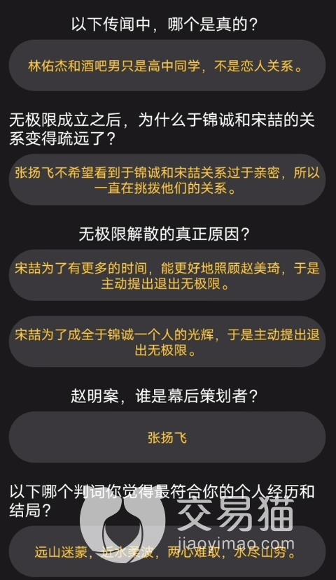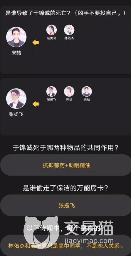 无论林佑杰肯不肯承认,他和于锦诚都在10:20至10:30期间吸了一根电子烟(一般人在未确认死亡原因前,都不会透露自己是什么时候吸的),但是从现在的情形看来,林佑杰的确是在10:20至10:30这一期间吸了一根,而且还不能排除他杀人的可能性。玩家要破解于锦诚的计算机密码,才能得到最新的一条微博,而根据图片来看,这条微博发布时间大约在2点30分,也就是2点30分的时候,就已经喝得烂醉如泥了,这种情况并不符合迷幻与酒精的双重作用,林佑杰被杀的可能性基本可以排除。
