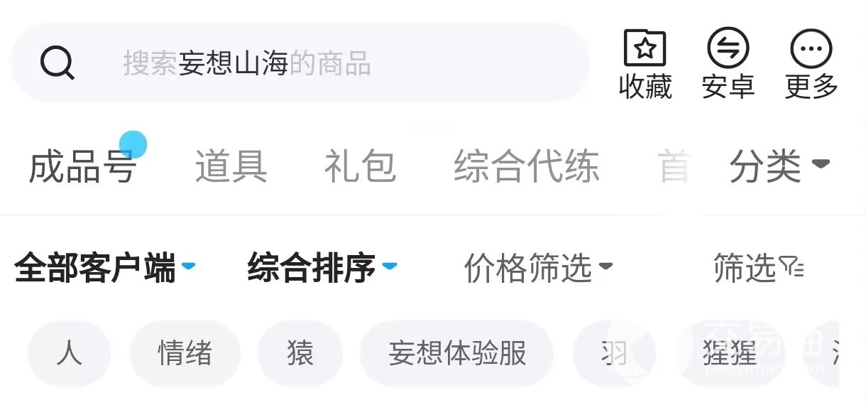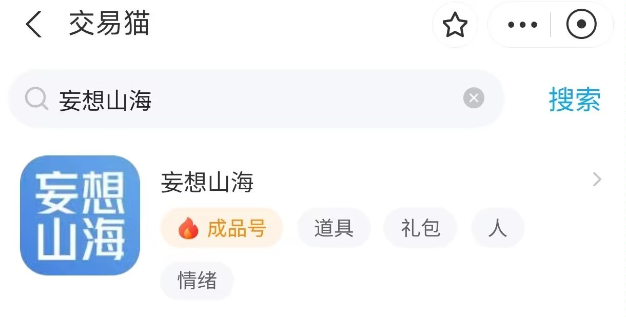 在交易猫平台购买妄想山海的账号十分简单明了,玩家只需要搜索妄想山海,就可以在下方看到妄想山海的专区,点击进入专区之后就可以看到大量的游戏账号,这些游戏账号中平台价格,拥有的装备都不一样,玩家可以根据自身的需求对这些账号进行筛选,然后购买。