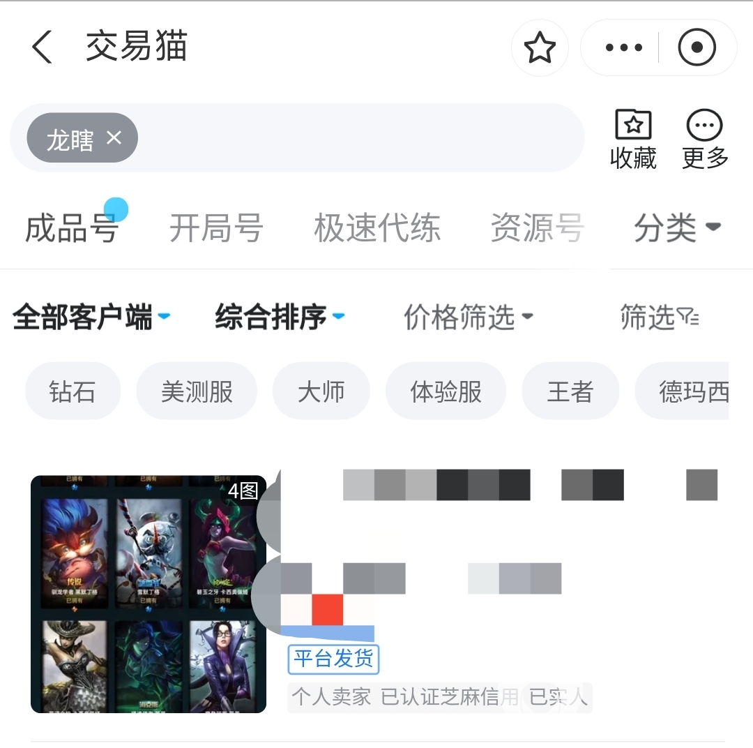 在交易猫平台上,英雄联盟游戏设有专属的账号交易专区。您可以在该专区内搜索“龙瞎”,以找到相关皮肤的游戏账号。通过参考已经上架且备受欢迎的账号价格,您可以更加准确地确定自己账号的价值,从而提高市场竞争力。