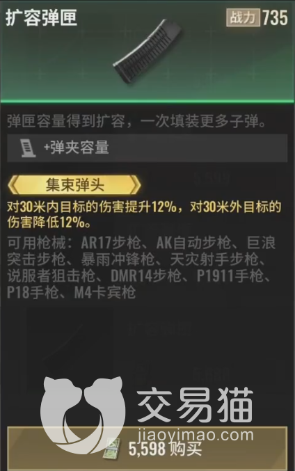 弹匣方面建议各位平民玩家选择集束或者是热弹。能有效的增加玩家们在作战时期的伤害,玩家们可以按照自己的选择以及市场价格来进行购买,这两者差别并不是很大,只不过对于范围内杀伤不同而已。没资金的情况下,哪个便宜买哪个。