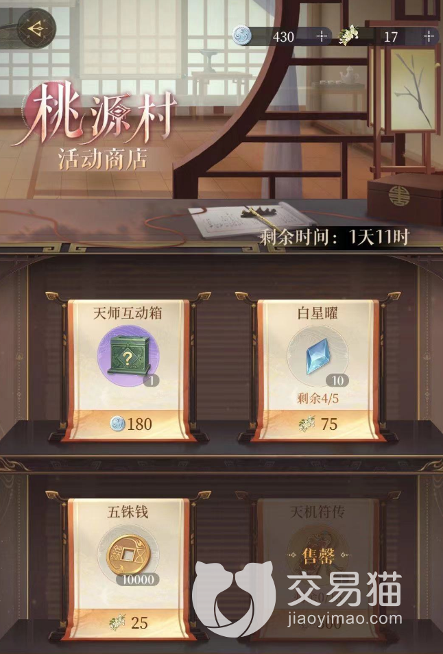 其中商店里的金色品质大奖是刘辩的天师服装,兑换价格4500槐花,兑换优先度最高。其他物品推荐兑换售价270个槐花的天师互动箱子,里面包含的多个天师互动,但是使用前提是拥有天师衣服。