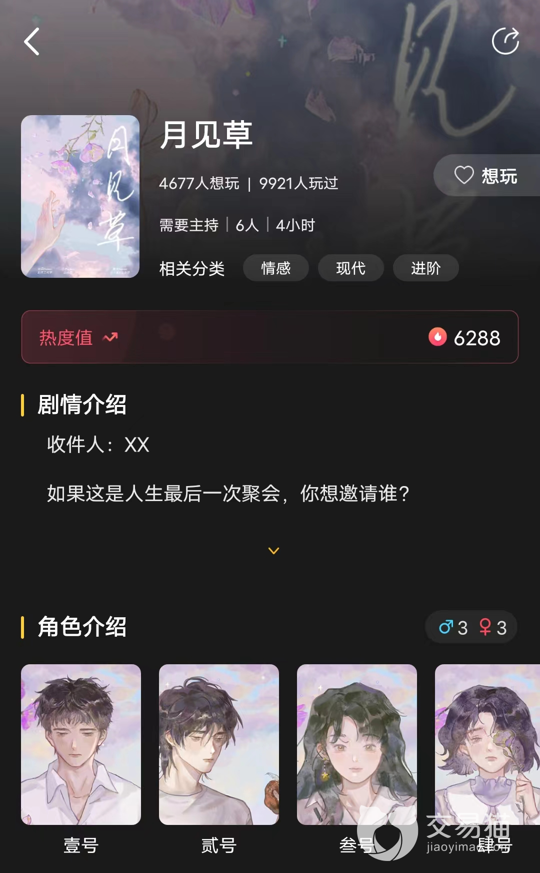 1、一般来说的话主持人是需要活跃气氛的,在玩家还没有准备齐的时候,可以先和已经进入房间的玩家聊一下天。主要是为了大致判断玩家适合剧本里的哪一个角色,因为找到契合的角色是提升剧本体验很重要的一个因素。